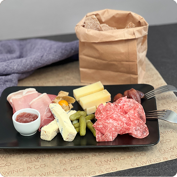 Ost- & charktallrik Salami, lufttorkad skinka, Gruyère, Cambozola, conichons, dadlar, fikonmarmelad & Solmarka ekologiska delikatessknäcke. En lättare förtäring som kan delas på två personer!* 279kr